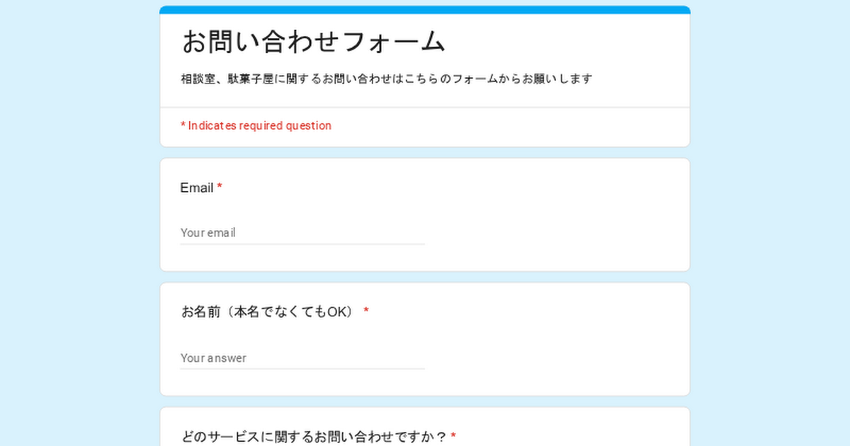 レンタルスペース 2026.04.20 駄菓子屋の休業日に店内スペースを使って、 ワークショップ等を開いてみませんか? 興味のある方は、一度ご連絡ください お問い合わせフォーム相談室、駄菓子屋に関するお問い合わせはこちらのフォームからお願いします