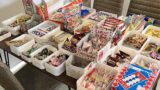 上の写真は、長女と長男が並べてくれた商品です。商品の高さとか見やすさなどを考えながら、販売用の机いっぱいに並べてくれました。他にも、販売する予定の駄菓子類の準備や、車から販売場所への荷物運びなどなど、たくさんのことを手伝ってくれました。